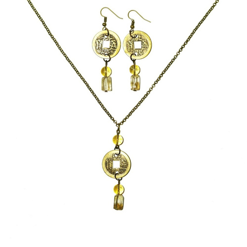 ست گردنبند و گوشواره ایچینگ نماد قدرتمند ثروت، رفاه و حفاظت است. ترکیب سکه های ایچینگ و سنگ سیترین (سنگ ثروت) قدرت این ست را افزایش داده و باعث خوشبختی، شادی، زندگی طولانی و سالم می شود. با استفاده از این ست جذاب، خوش شانسی را وارد زندگی خود کنید.