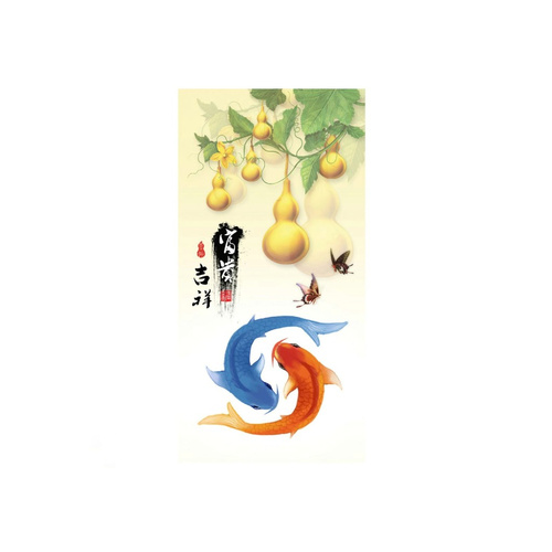 تصویر دو ماهی به معنای عشق و همبستگی است و از دیرباز با فراوانی، ثروت و رفاه در فنگ شویی شناخته شده است. همچنین دو ماهی در حال چرخش نمادی از یین و یانگ در فنگ شویی می باشند و به عنوان تکمیل کننده ی یکدیگر هستند. کدو یکی از پربرکت ترین نمادهای منزل در علم فنگ شویی است و برای سلامتی، برکت، طول عمر، خوش شانسی و دفع انرژیهای منفی استفاده می شود. پروانه در فنگ شویی نمادی از عشق، شادی، آزادی، خلاقیت و روابط خانوادگی صمیمانه می باشد.